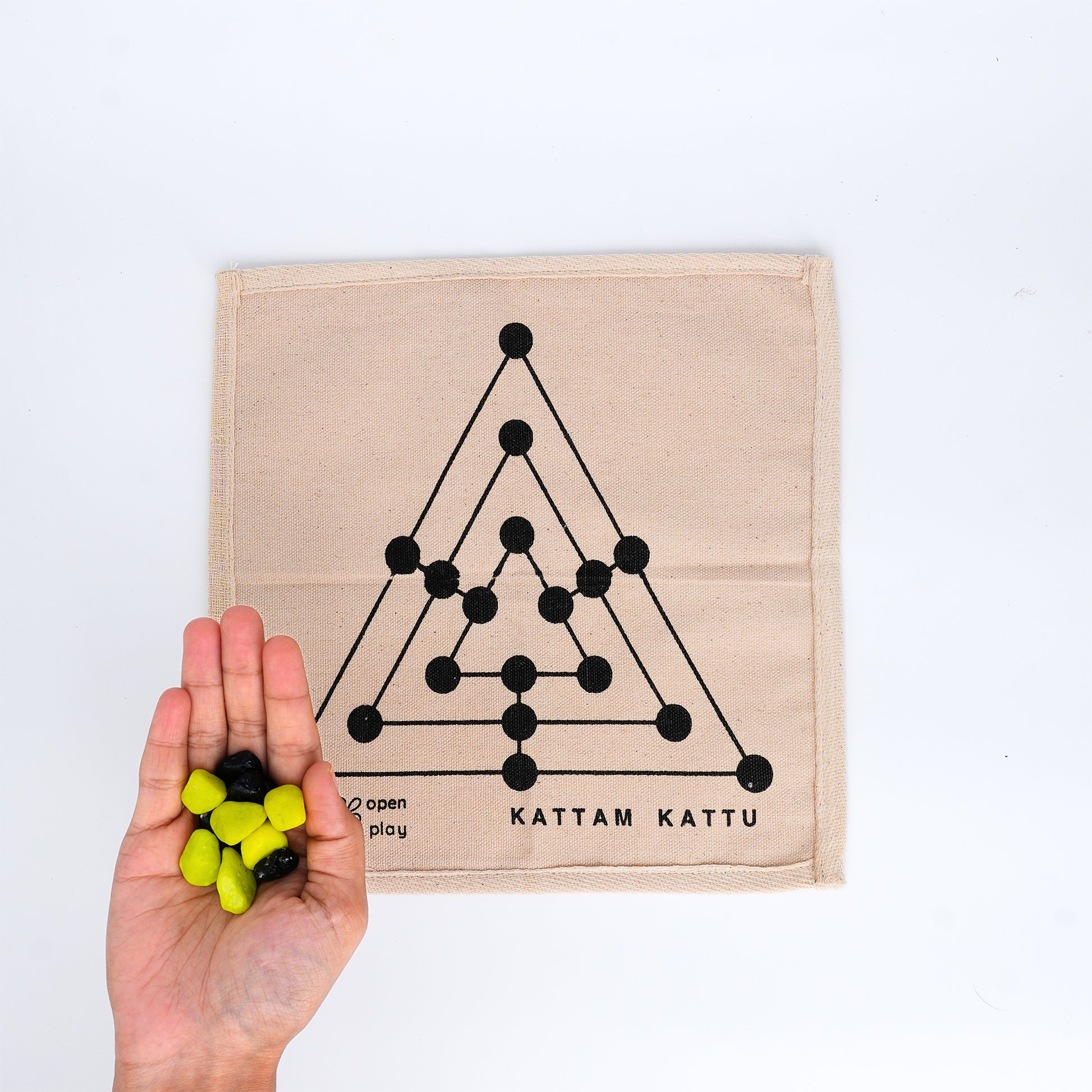 Kattam Vilayatu is a traditional strategy game where players aim to align their pieces in a straight line on a 3×3 grid.